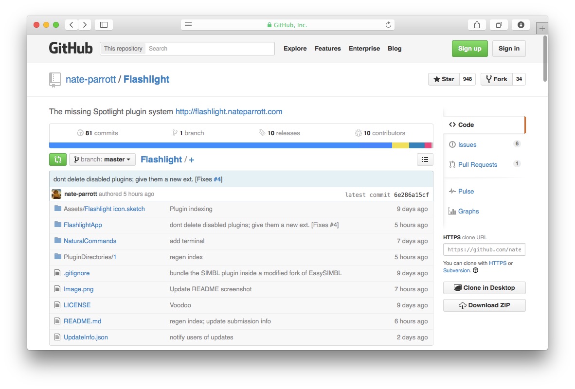 FlashlightはAlfredやQuicksilverの様にOS X YosemiteのSpotlight機能に拡張機能追加できるプラグインシステムで、このプラグインはGitHubで公開されており、NorioさんのEasySIMBLから一部forkされており、GPLライセンスで公開されています。