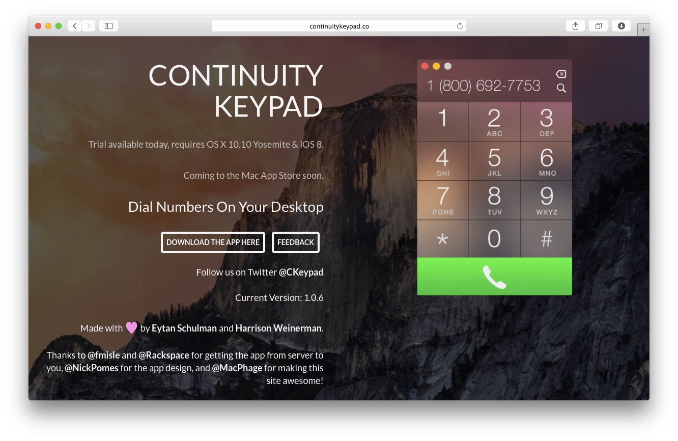 Continuity KeypadはOS X YosemiteのContinuity機能を使用してMacからiPhone経由で電話をかけられるアプリで、OS X YosemiteがリリースされるまではBeta版扱いでしたが、先日 v1.0に達成したそうです。