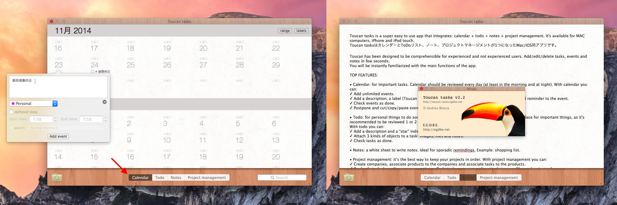 カレンダー、ToDo、ノート、プロジェクトマネージャが1つになったMac、iOSデバイス対応アプリ「Toucan tasks」が無料セール中です。詳細は以下から。
