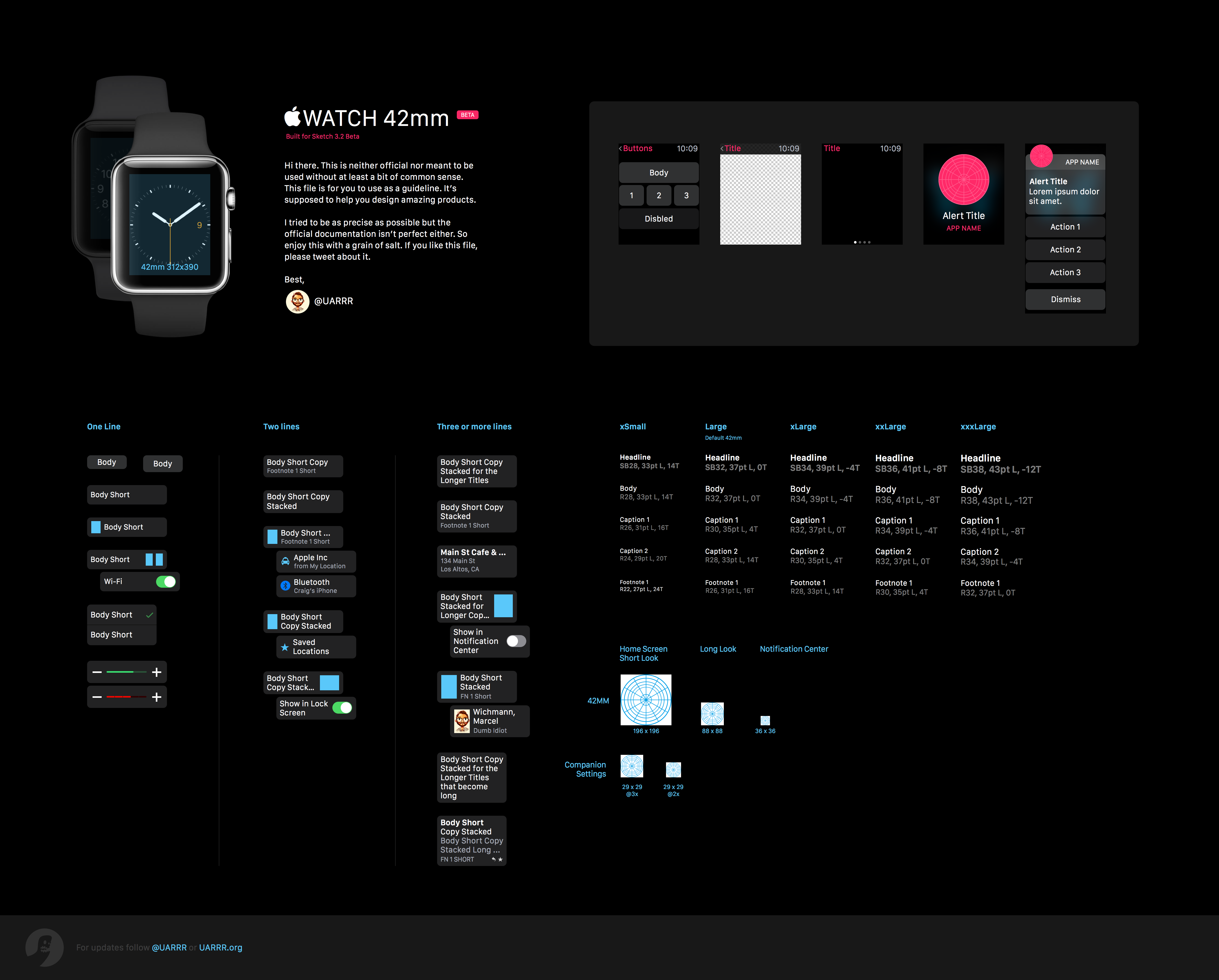 Sketch用のApple Watch UIテンプレート「Apple Watch GUI Sketch Template」がリリースされています。詳細は以下から。