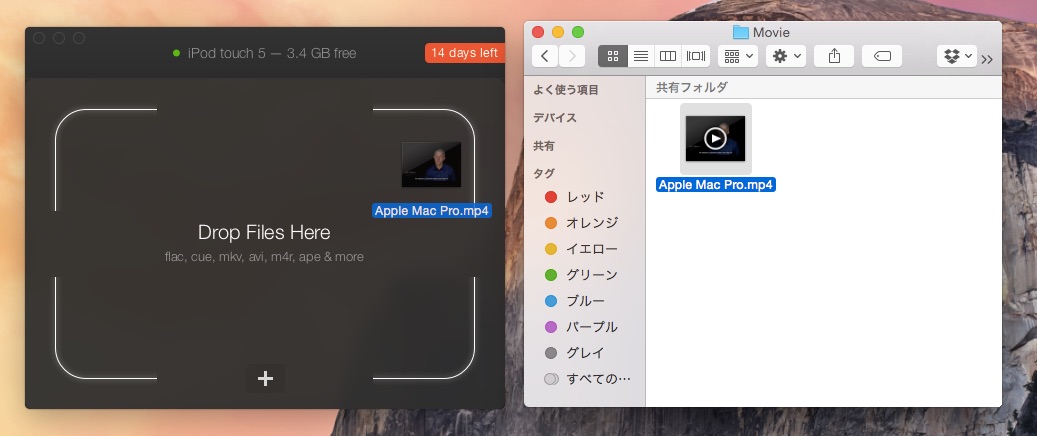次にiOSデバイスで再生したいメディアファイルをWALTRにドラッグ&ドロップ。