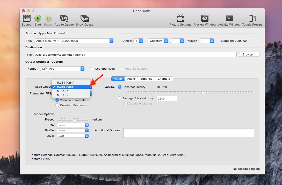 内部エンジンんとして使用されているFFmpegは2014年3月28日にリリースされたv2.2でH.265に対応しており、これをベースにしたHandBrakeもv0.10.0でオプションとして選択可能になっています。