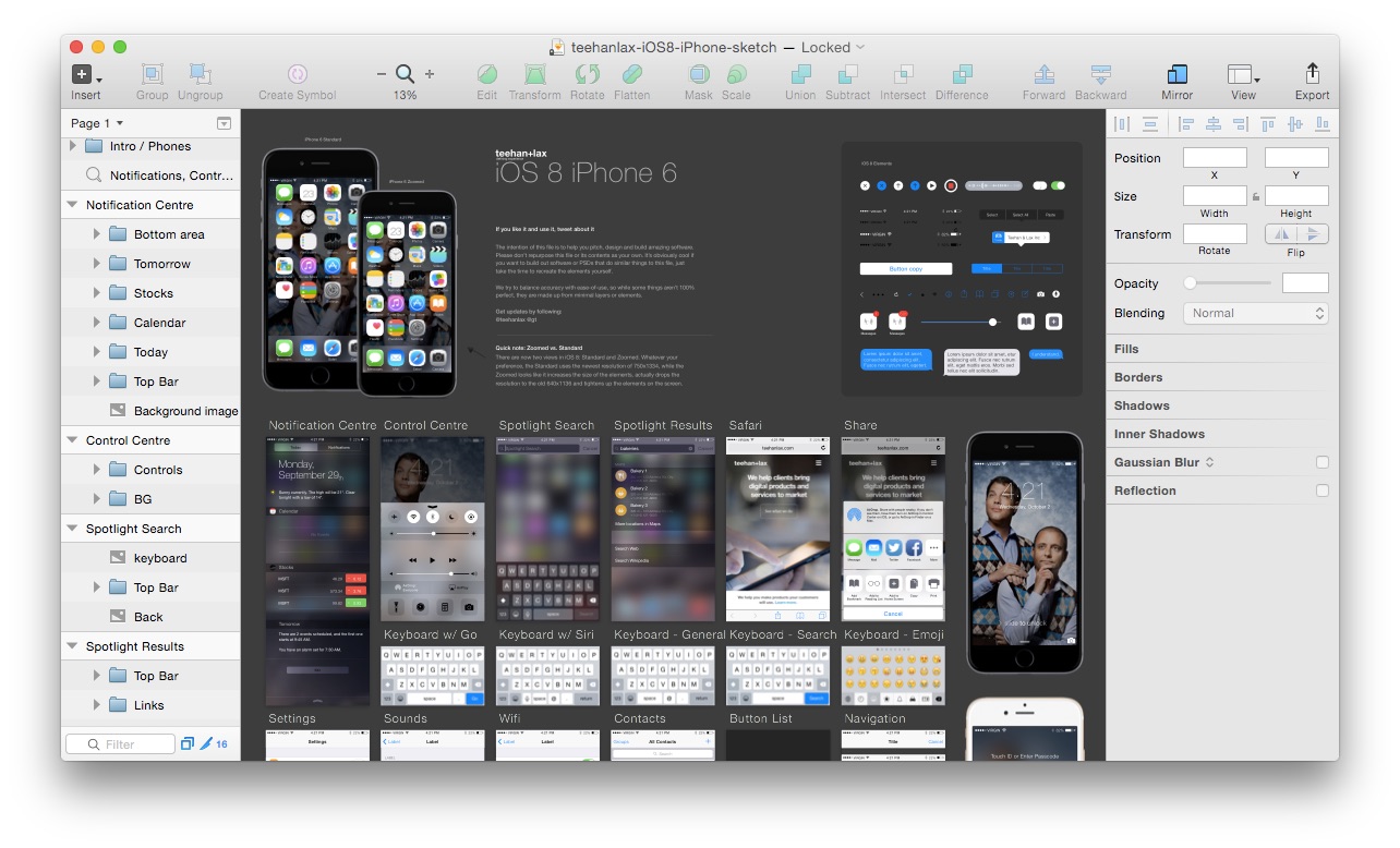 iOS 8 GUI for Sketchには以前リリースしたPSD版と同様にiPhone 6のiOS 8 GUI エレメントが収められており、iOS 8で新たに追加されたボイスメッセージのUIやQuickType、メール、シェアウィンドウなどのUIと「iOS 8 Elements」が追加されています。