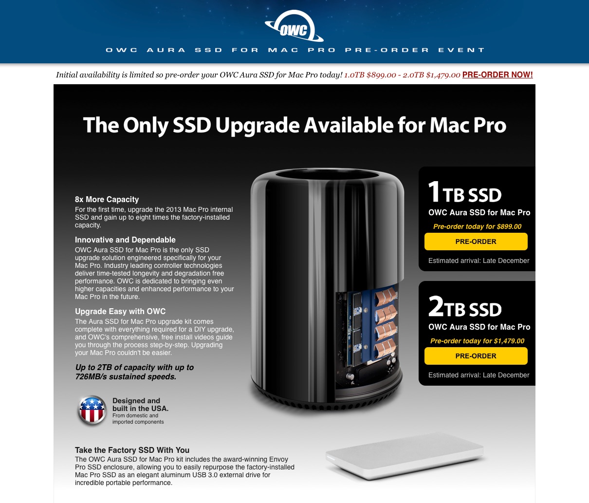 OWC Announces Aura SSD as Industry’s First SSD Upgrade for the 2013 Mac Pro And Availability for Pre-Order http://t.co/VBL2Ab2XrD
