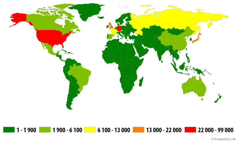 All statistics used in this report were obtained using Kaspersky Security Network (KSN) a distributed antivirus network based on the work of various components of Kaspersky Lab’s anti-malware protection. The data was collected from KSN users who agreed to transfer it. Millions of Kaspersky Lab products users from 213 countries and territories worldwide participate in the global exchange of information about malicious activity.