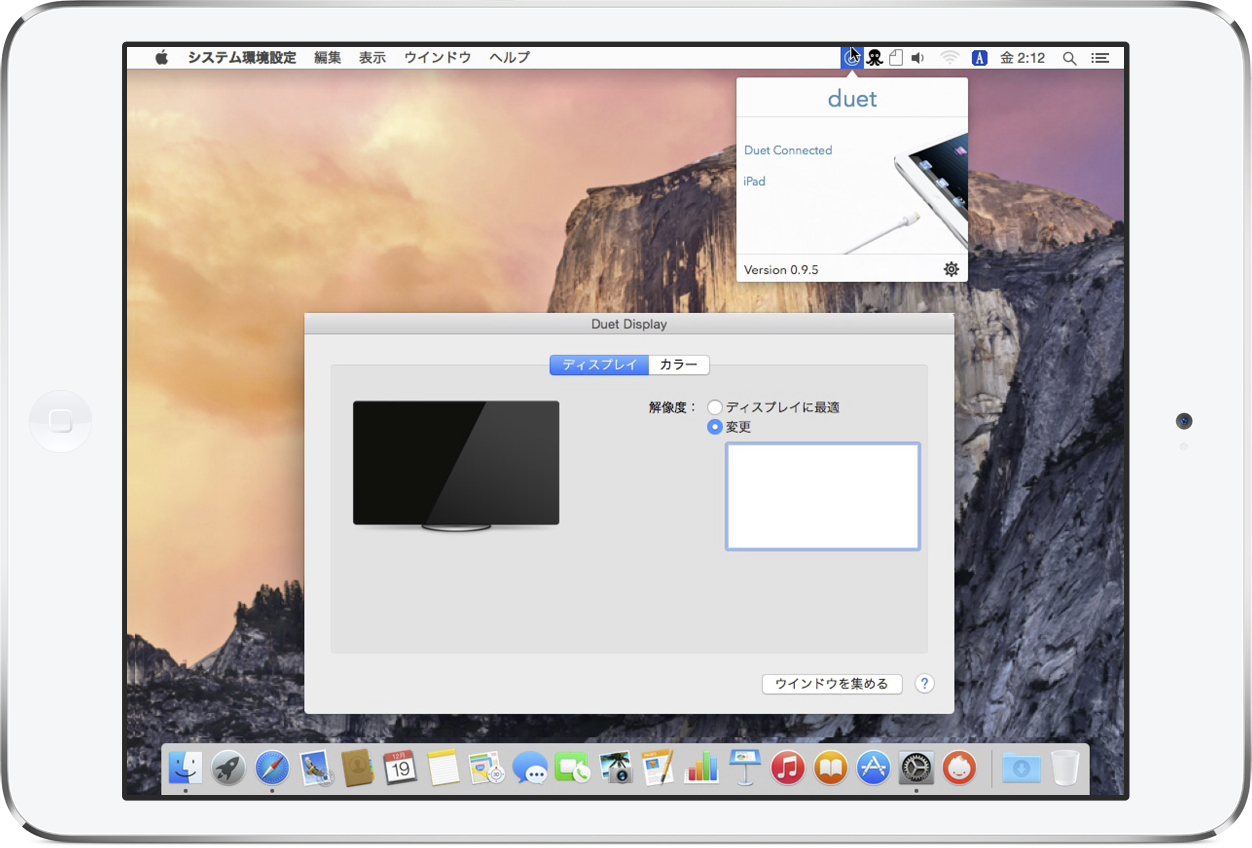 4.これでMacのサブディスプレとしてiPadが使用可能です(実際にはUSBで接続されています)。