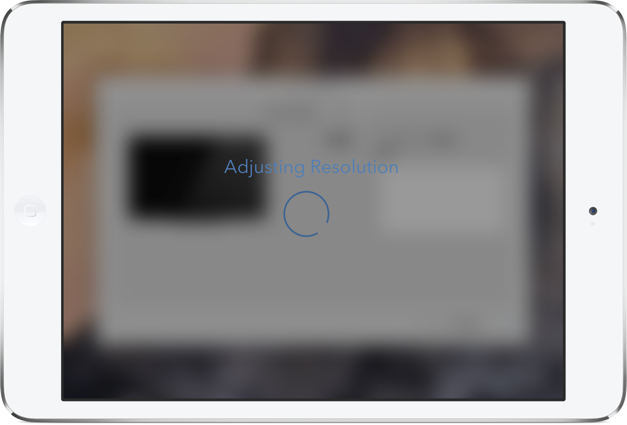 注:ランドスケープモードはMacの[システム環境設定] > [ディスプレ]で設定するのではなく、iPadの「画面の回転」を使用して横向きにすると”Adjusting Display”の表示がされた後、切り替わります。
