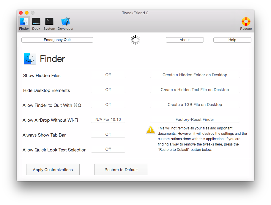 TweakFriendはTinkerToolやOnyX