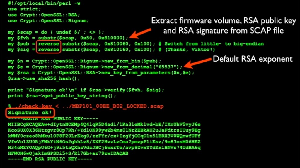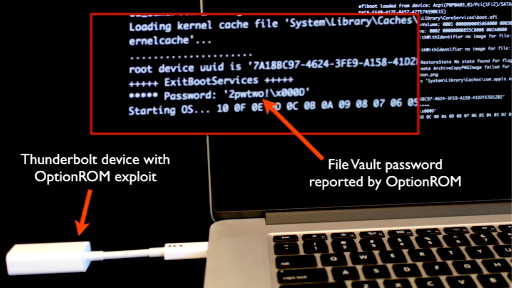 Once installed, the firmware cannot be removed since it replaces Apple’s public RSA key, which means that further firmware updates will be denied unless signed by the attacker’s private key. The hacked firmware can also replicate by copying itself to option ROMs in other Thunderbolt devices connected to the compromised Mac during a restart. Those devices remain functional, making it impossible to know that they have been modified.