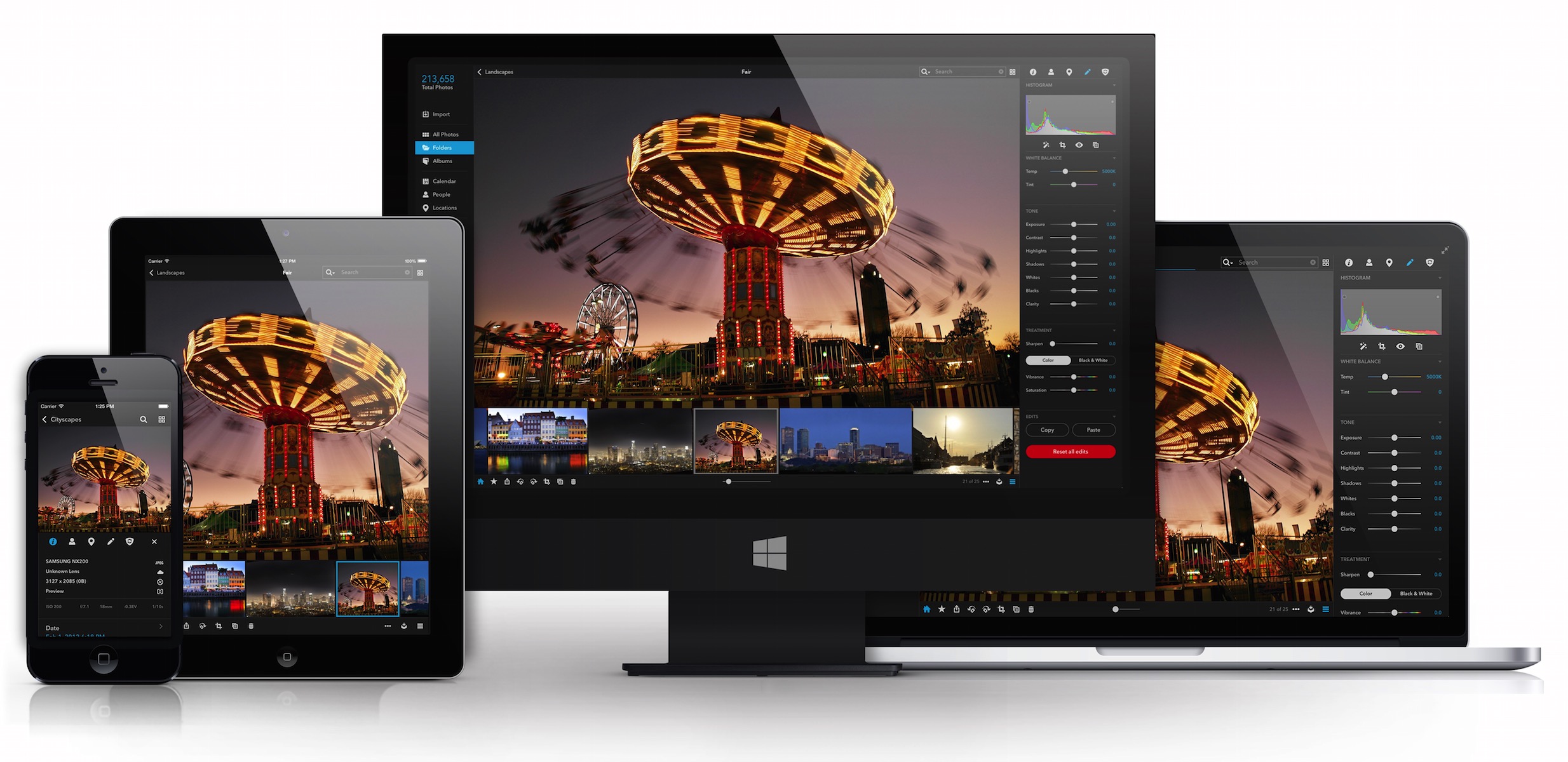 同じアカウントでログインすれば他のデバイスと同期することが可能で、アルバムやカレンダー、タグ、ロケーションでのソートやサイドバーではExifタグ、GPS情報、タグ付け、同期済のデバイスの表示が可能です。