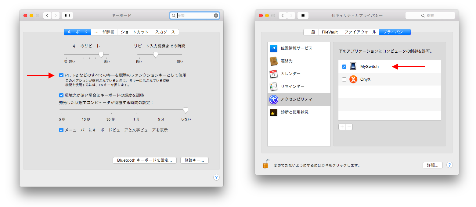MySwitchはMacのファンクションキー(F1, F2 …)にアプリを割り当てて、アプリの切り替え/起動が行えるアプリで、使用するにはシステム環境設定の