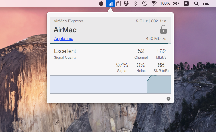 WiFi SignalはMac/iOSアプリの「WiFi Explorer」を販売しているIntuitibits LLC (旧Adrian Granados)が開発するメニューバー常駐型のWiFiモニターアプリです。