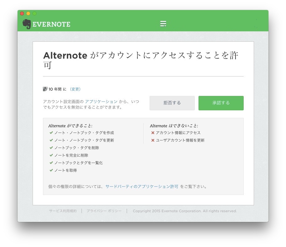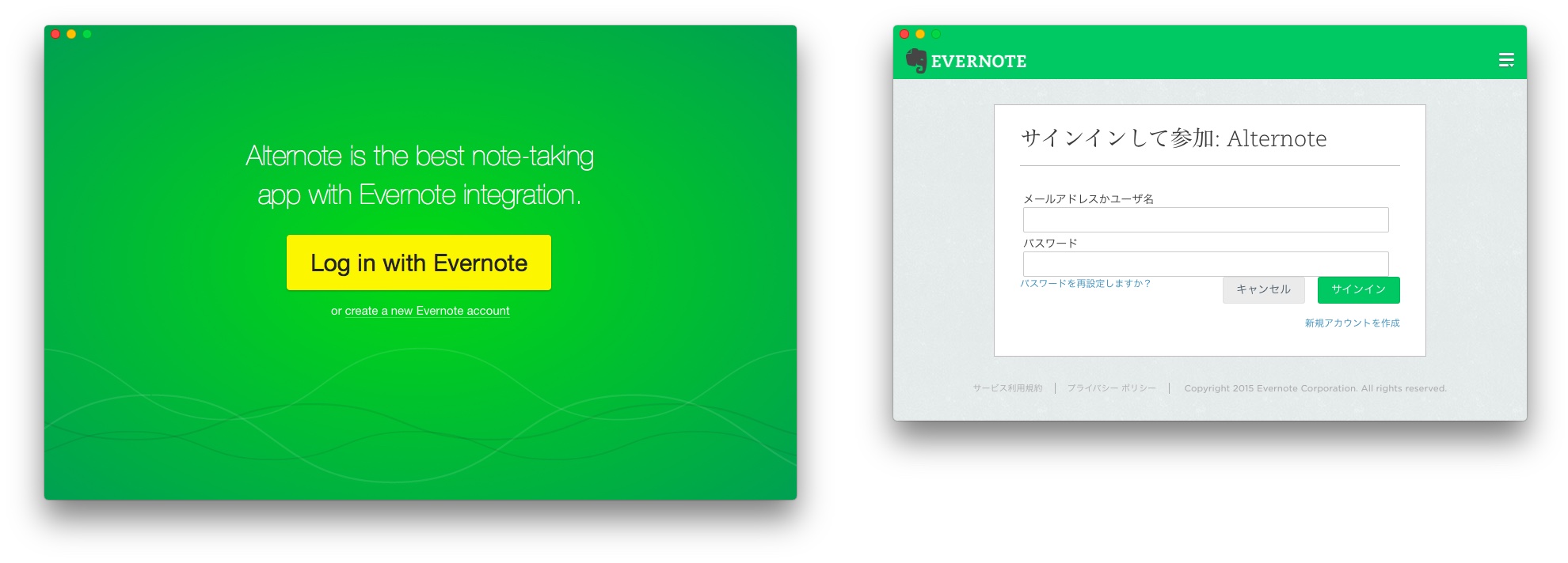 使い方は簡単で、Alternoteを起動してEvernoteアカウントでログイン。