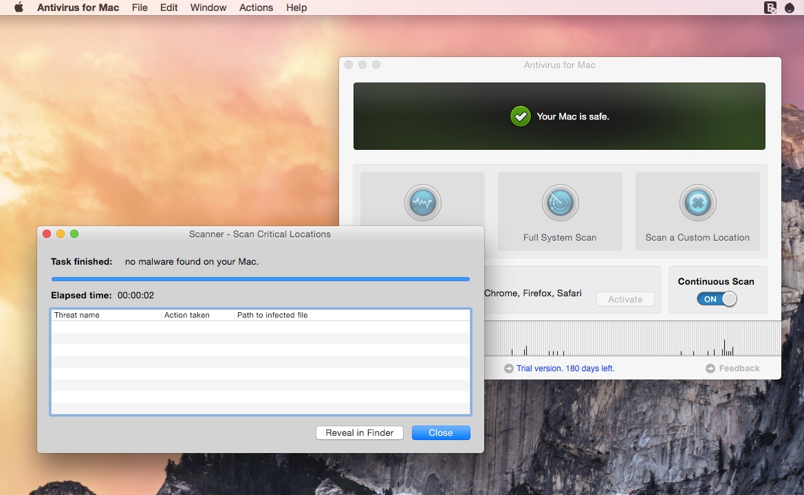 これで、6ヶ月(180日)限定でBitdefender Antivirus for Macのすべての機能が使用できるようになります。