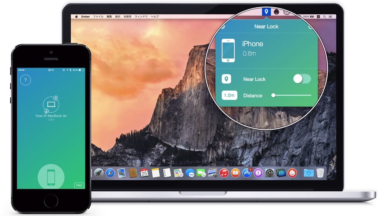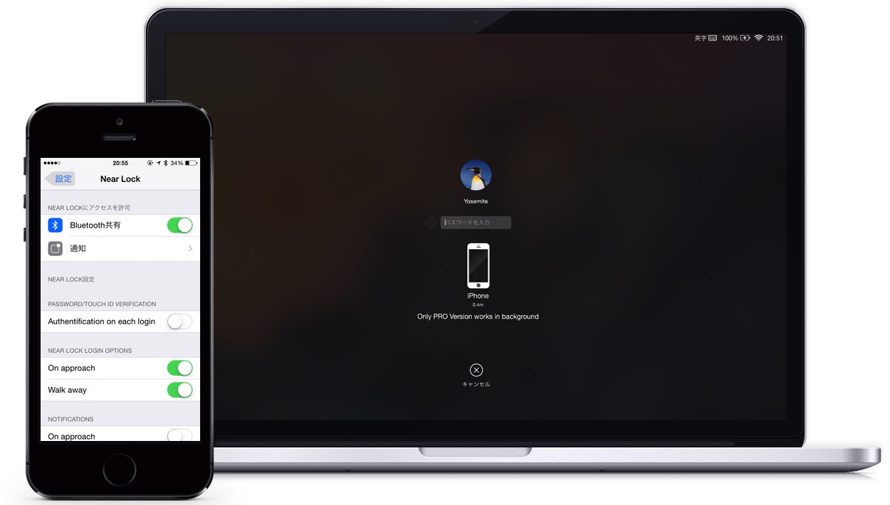 Near LockはBluetooth Screen LockやI’m Awayと同様にMacでiOSデバイスのBluetooth信号を測定し、iOSデバイスが一定の距離以上になるとMacをロックし、近づくとロックを解除してくれるアプリです。