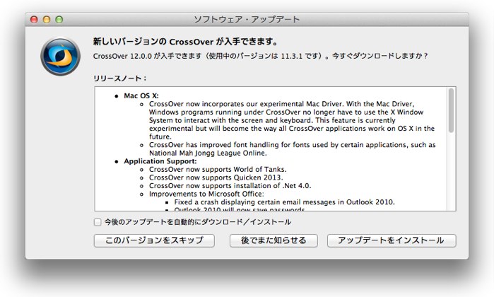 CodeWeaversより「CrossOver Mac 12」がリリース