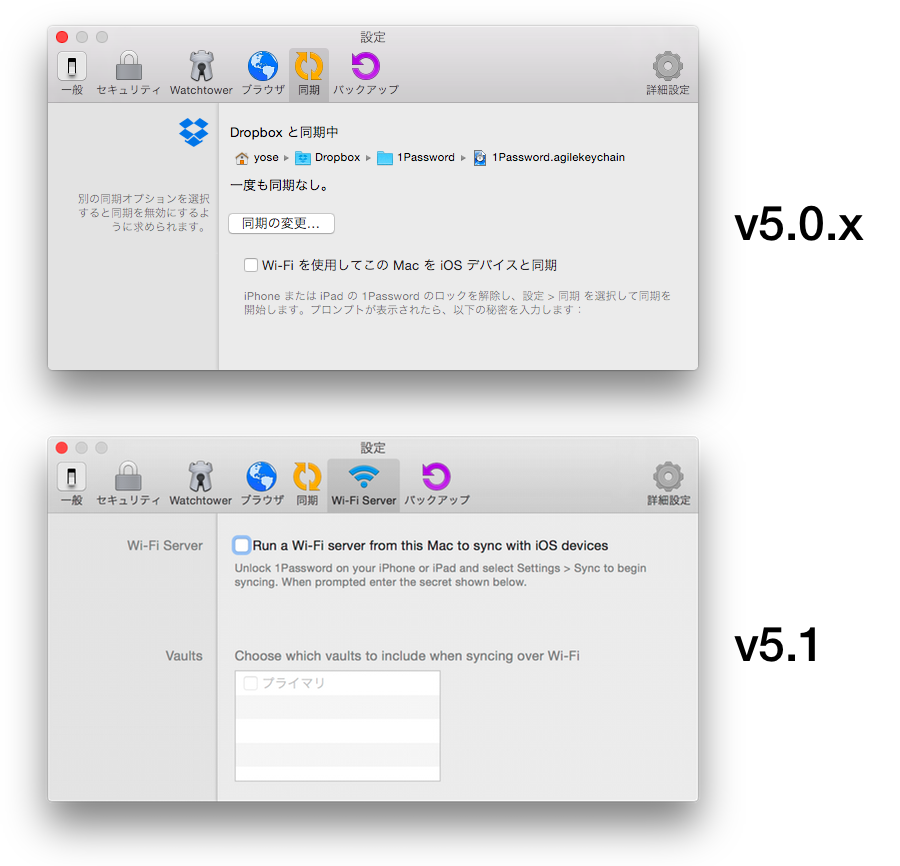 AgileBitsは1Password v5.1 for Macのアップデートを”Syncerrific(Sync + riffic)”エディションと呼んでおり、以下の様に同期に関係したアップデートがなされています。