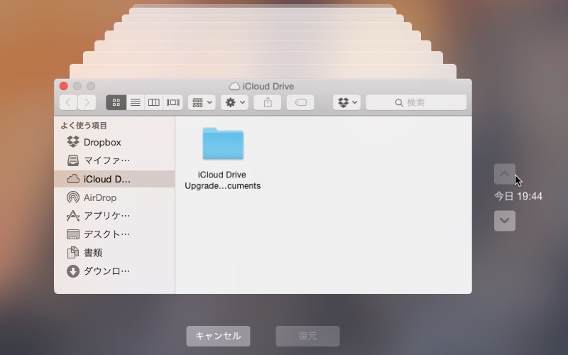 現在TimeMachineでiCloud DriveをブラウズするとiCloud Driveが見れなかったり、”iCloud Drive Upgrade – Recovered Documents”ディレクトリしか見ることが出来ず、iCloud Drive内のバックアップは”Mobile Documents”内を探して復元するしかありませんでしたが[1, 2]、OS X 10.10.2ではTimeMachine内のiCloud Driveディレクトリから復元することが出来るようです。