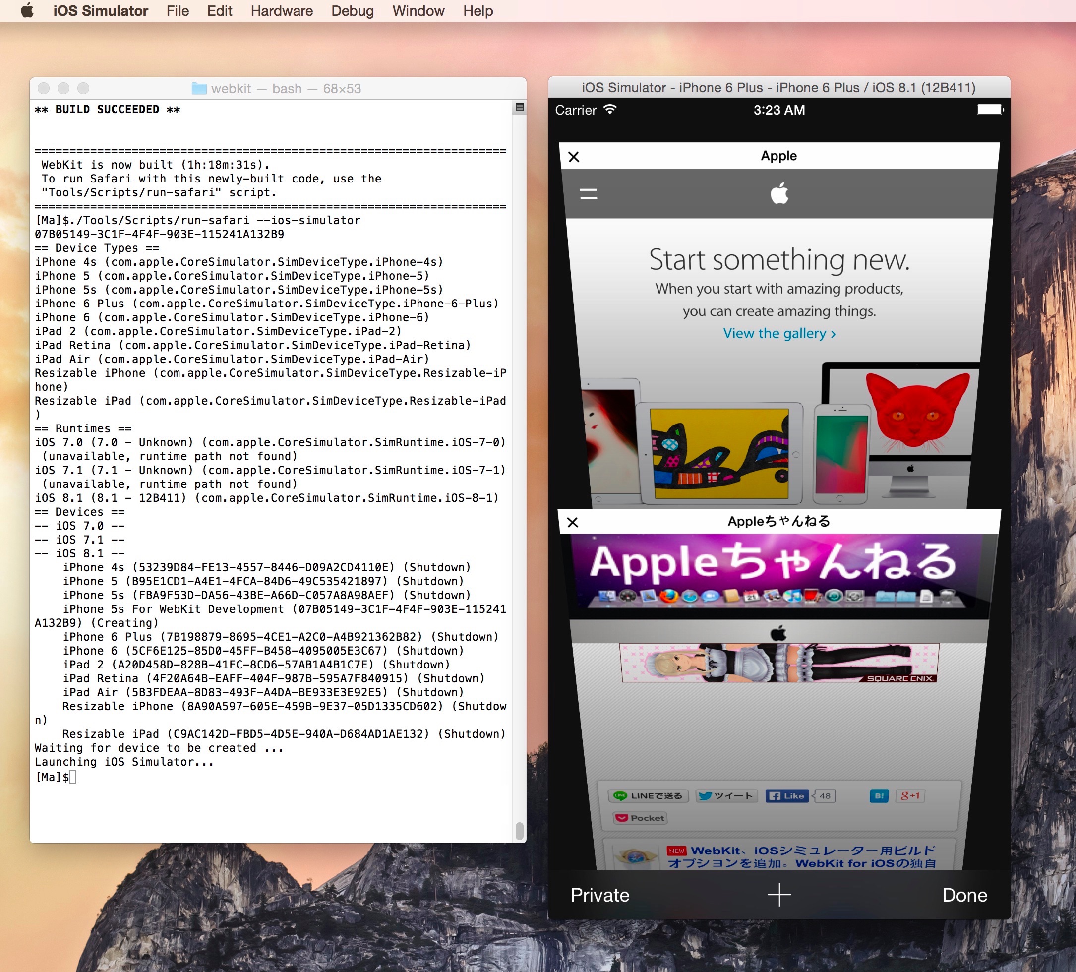 WebKitはAppleが中心となって開発を進めているSafariのレンダリングエンジンですが、WebKit blogによると2015年1月27日以降のWebKitのNightly BuildからWebKit for iOS Simulator(iOSシミュレータ用のSafari)のビルドオプションを追加したそうです。