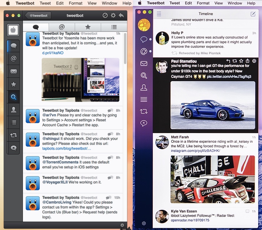 また、Tapbotsの@tapbot_paulさんが以下のツイートをリツイートしている事もあり、Tweetbot v2の必要システム要件はOS X Yosemite以上となるようです(OS X 10.9 Mavericksなどをサポートするかは不明)。