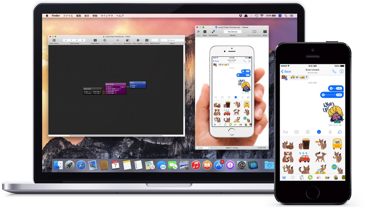 また、Mac用ドロワーアプリ「Sketch」のプラグインにも対応し、Sketchで作成したモックアップ画面をOrigamiに描写させることが可能になっています。