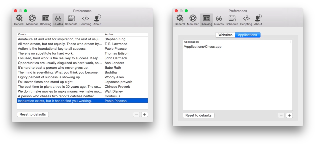 また、もしユーザーがブロックしたアプリやWebサイトを開いた際、Bashスクリプト($say “Get to Work”など)を使用して仕事に戻るよう促すことも可能です。