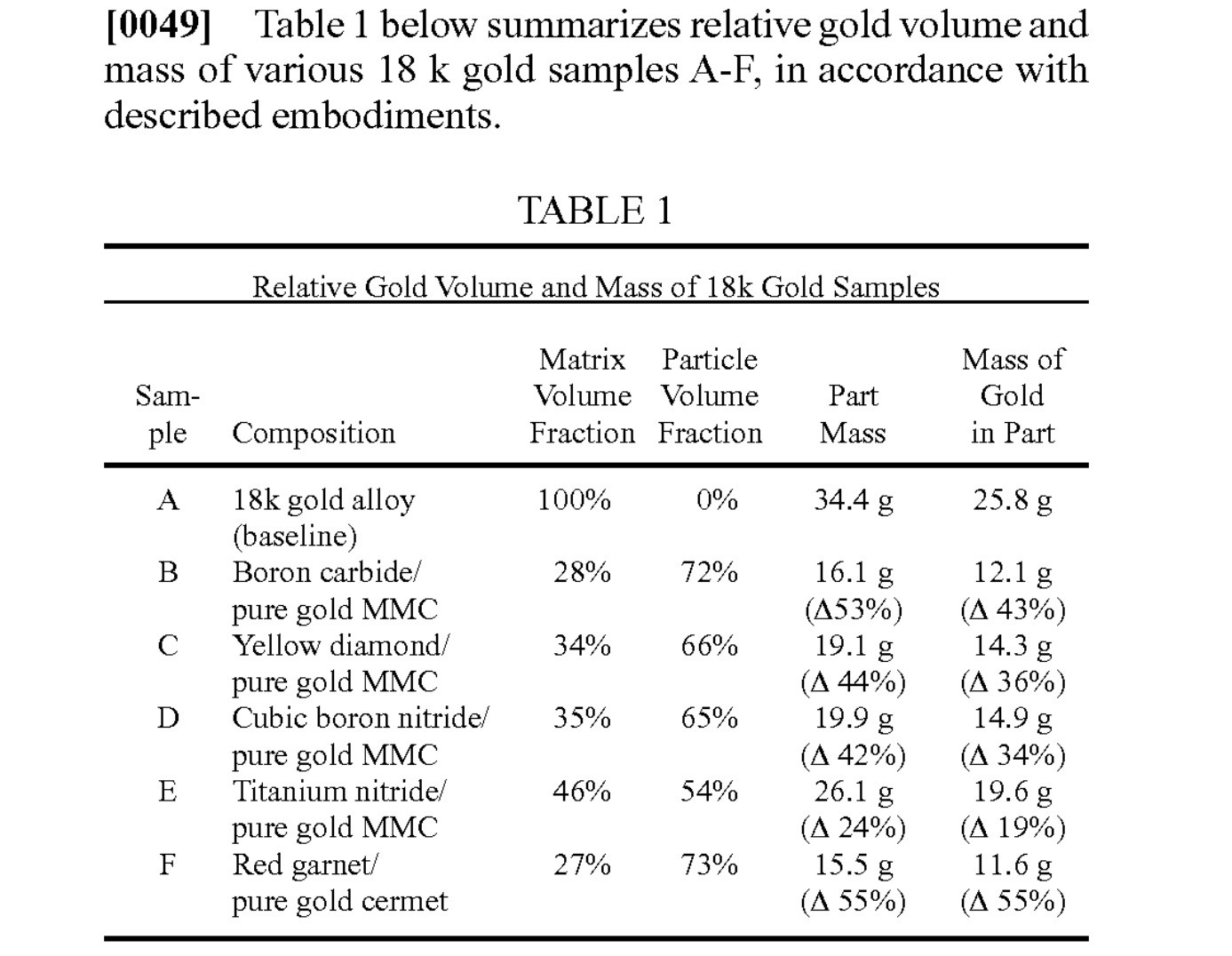 18kの時点で既に混ぜ物がしてあってこの特許はMMC構造体によって金の質量を減らせるて事らしい。