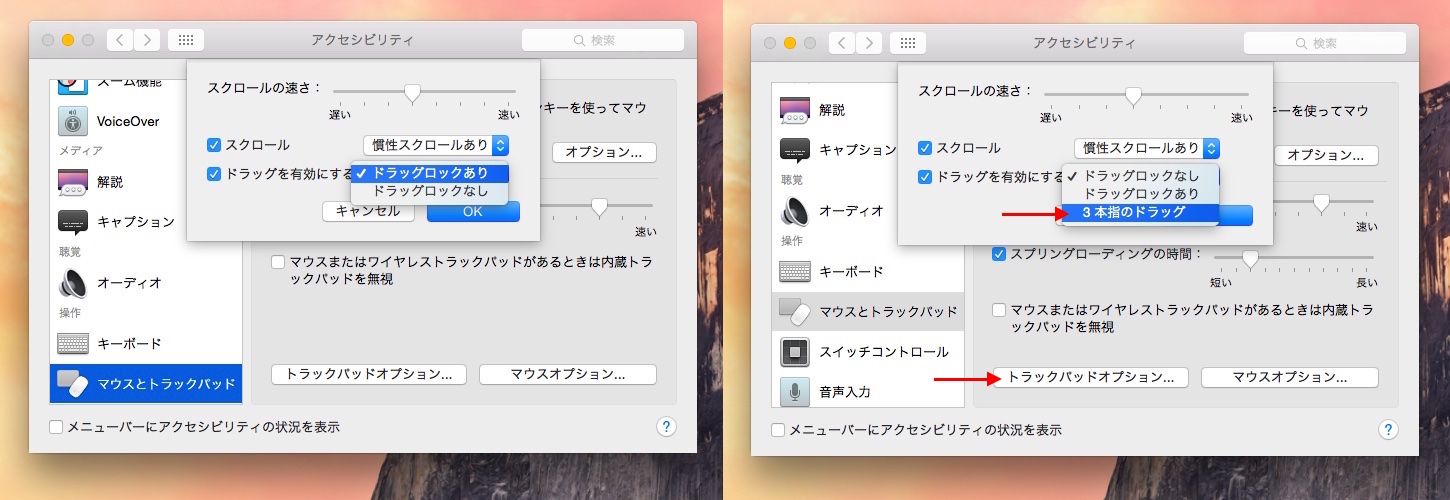 ・感圧タッチトラックパッドで3本指のドラッグを設定する方法 – 早乙女珈琲店