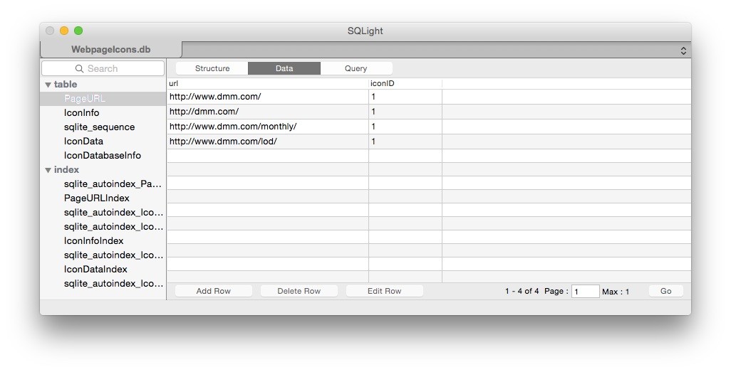 この不具合は米Lifehackerでも確認され「PageURLテーブル内に全てのURLが保存されている」ということなので、実際にOS X 10.10.2 Yosemite & Safari 8.0.4でWebpageIcons.dbを一度削除し、プライベートブラウズ機能を使用してdmm.comにアクセスしてみたところ、確かに全てのURLがPageURLテーブル内に保存されていました。(データはSQLiteデータベースなので確認したい方はDB Browser for SQLiteやSQLightなどを使用して下さい)