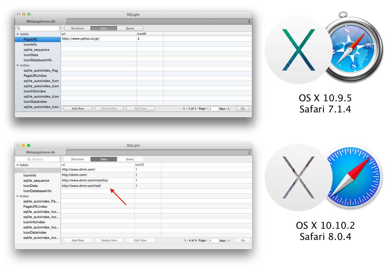 Macのトラブルを扱っているブログMacIssuesによると、ブログの読者から「OS X YosemiteのSafariのデータベースファイルである”~/Library/Safari/WebpageIcons.db”を開いてみたところ、このデータベースファイル内には私が訪れた全てのWebサイトのURLが保存されており、驚いたことにその中には私がプライベートブラウズ機能を使用して訪れたWebサイトのURLも含まれていた」という報告を受け、確認したところ確かに”WebpageIcons.db”内に訪れた全てのWebサイトのURLが含まれていたそうです。