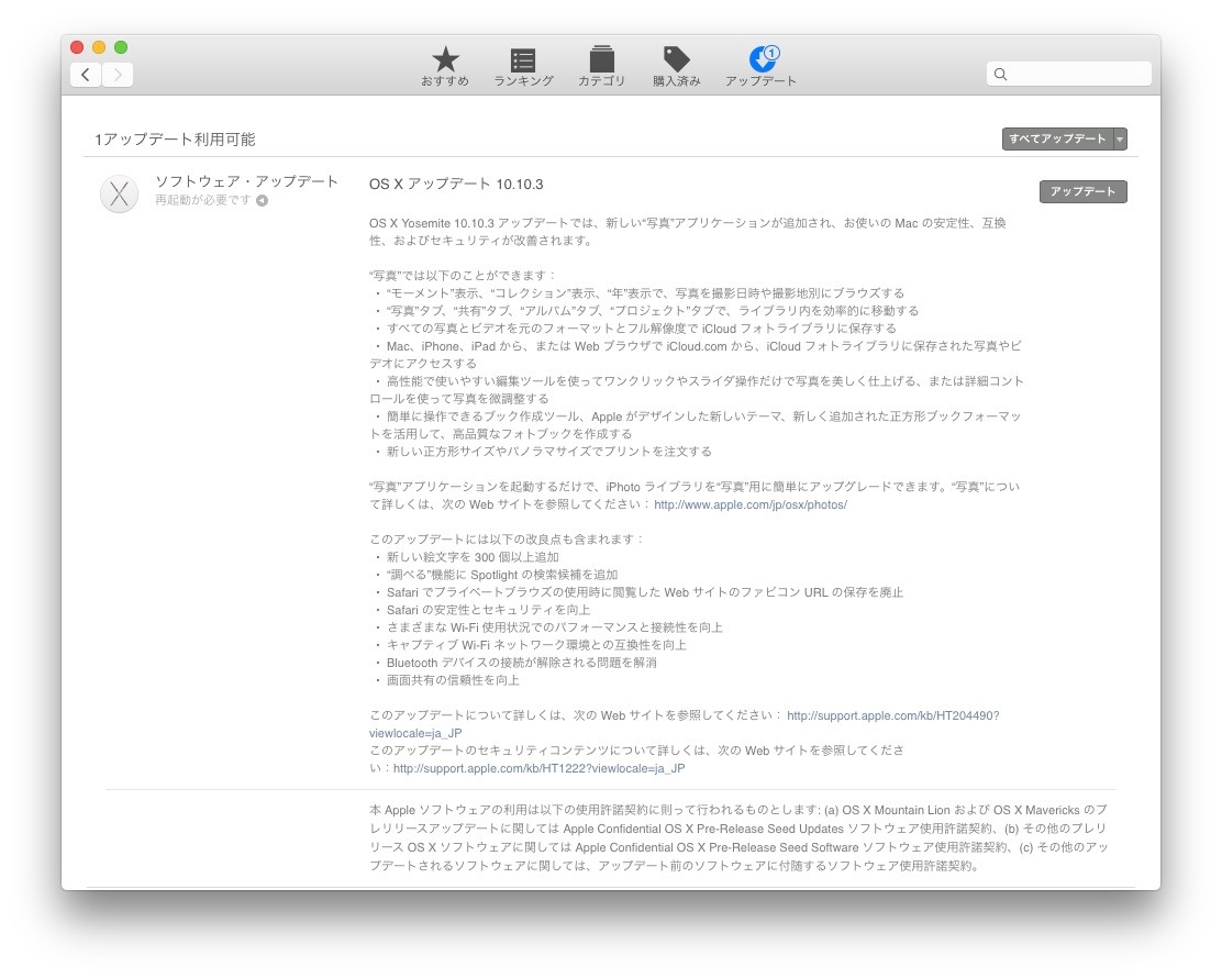 ・2015年04月09日:OS X Update 10.10.3 (14D131) – 正式リリース
