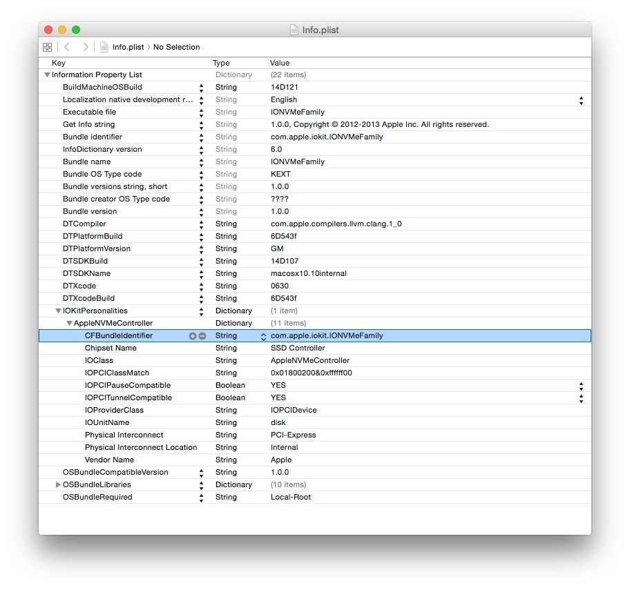 AppleはMacに独自規格のPCIe SSDを採用しているため、これから発売されるNVMe対応のSSDを使用することは難しいと思いますが、Insanelyなどではこのkext(plistを見る限りOS X 10.10.3に含まれているkextがv1.0)を古いバージョンのOS Xに適用できるかどうかが既に話題に上がっているようです。(Hackintoshや旧Mac Proユーザーは恩恵があるかもしれません)