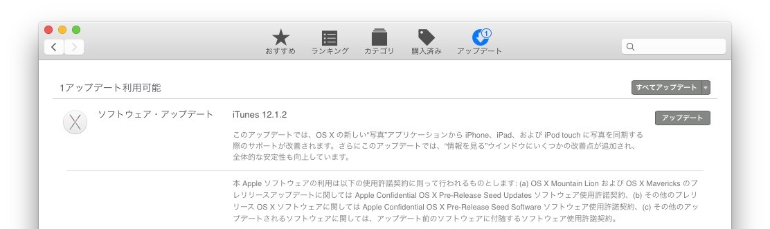 iTunes 12.1.2はAppleの新しい写真アプリ「Photos」からiOSデバイスに写真を同期する際のサポートが改善される他、”情報を見る”ウィンドウに対してのいくつかの改善点と安定性が向上するそうで、Mac App Storeからアップデート可能です。