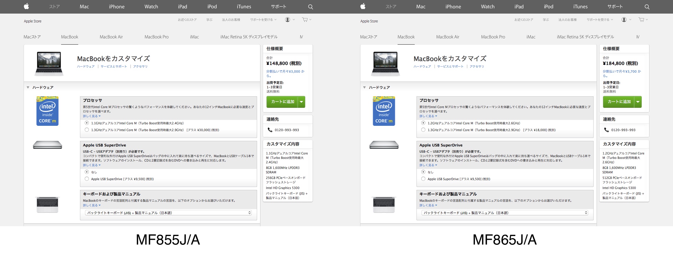 Appleが新しいMacBook(MF855J/A, MF865J/A)の発売を開始しています。詳細は以下から。