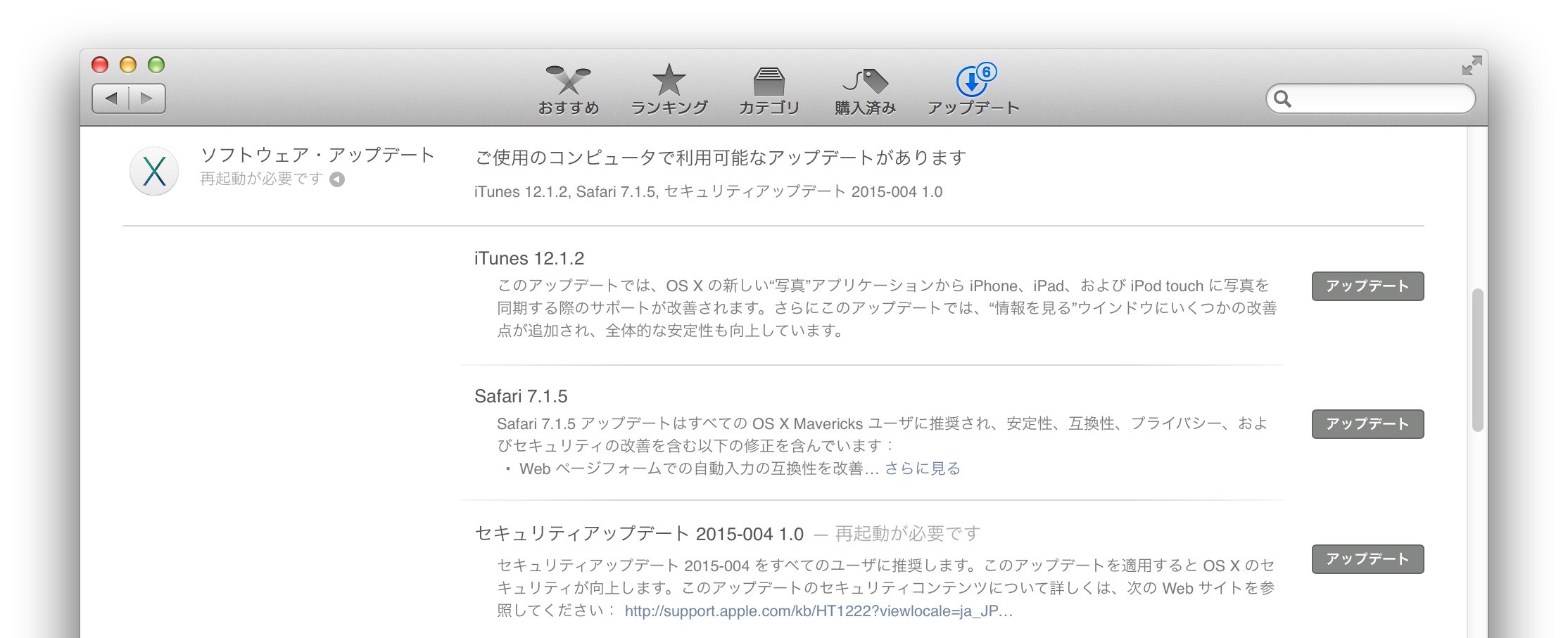 OS X 10.8.5 に最近の『セキュリティアップデート 2015-004』を適用後も
