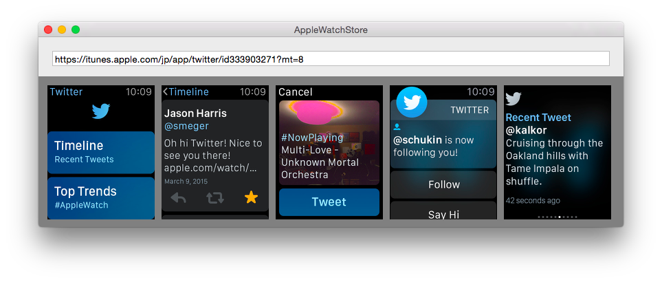 Apple Watch対応のiOSアプリからApple Watch用のスクリーンショットを抽出してくれるMac用アプリ「AppleWatchStore」が公開されています。詳細は以下から。