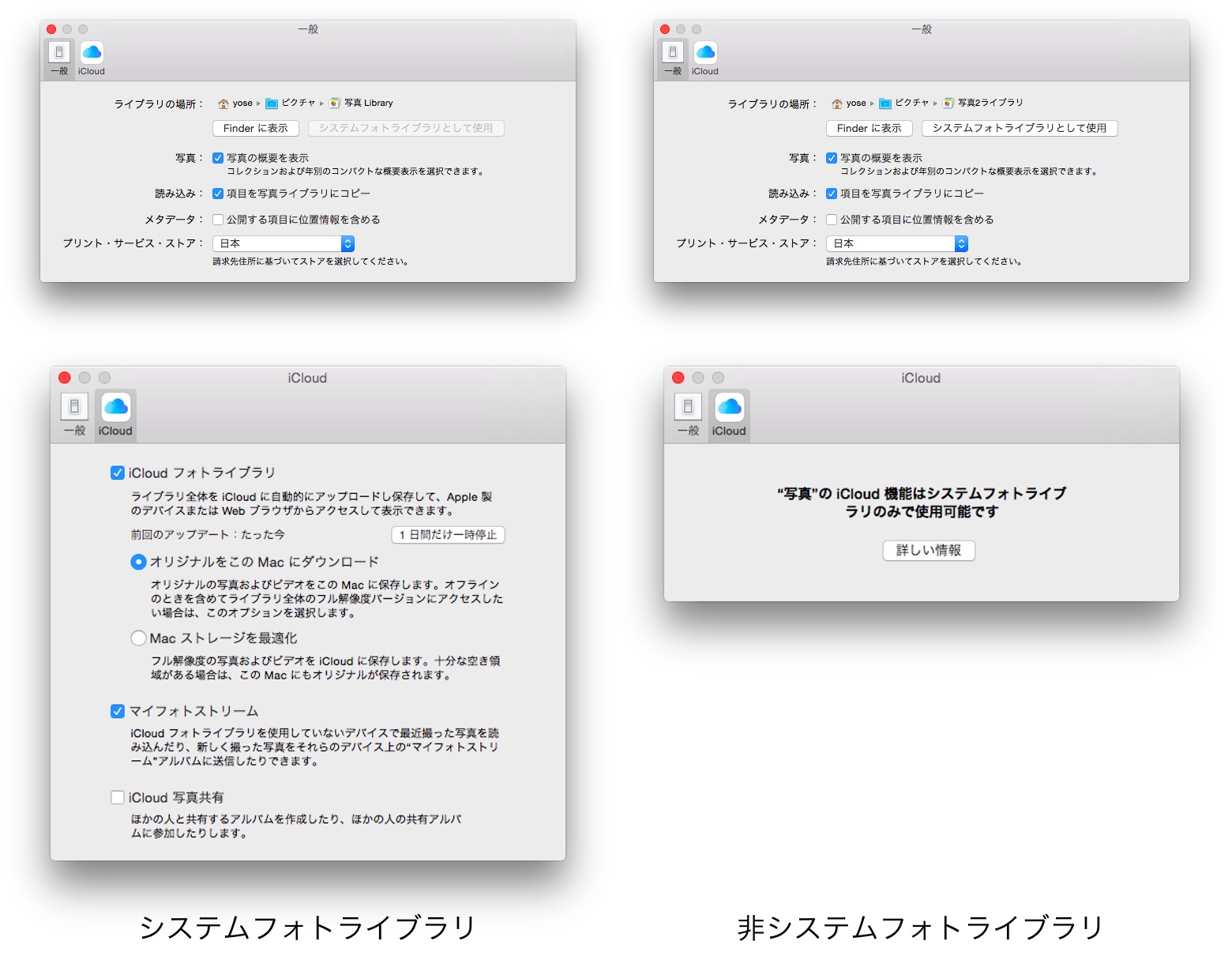 写真アプリで新しく導入された「iCloud フォトライブラリ」はシステムライブラリのみで有効にでき、システムライブラリは1つしか設定できないとしています。