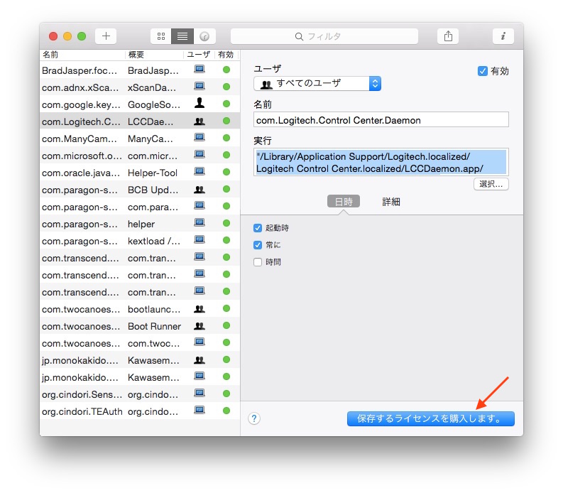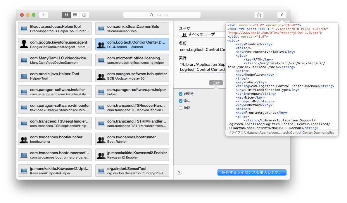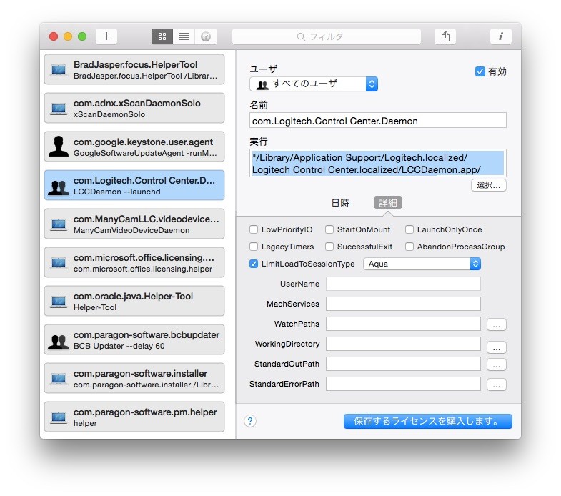 トライアル版では既存のLaunchdデーモンの編集や、新たなLaunchdデーモンの作成”Edit or delete an existing job & Create a new job“は出来ませんが、既存のデーモンの確認は可能なのでそれを元に”launchctl”コマンドでunloadしてやれば起動時のプロセスを減らせます。(launchctlの使い方はmaruko2 Noteを参考にして下さい)