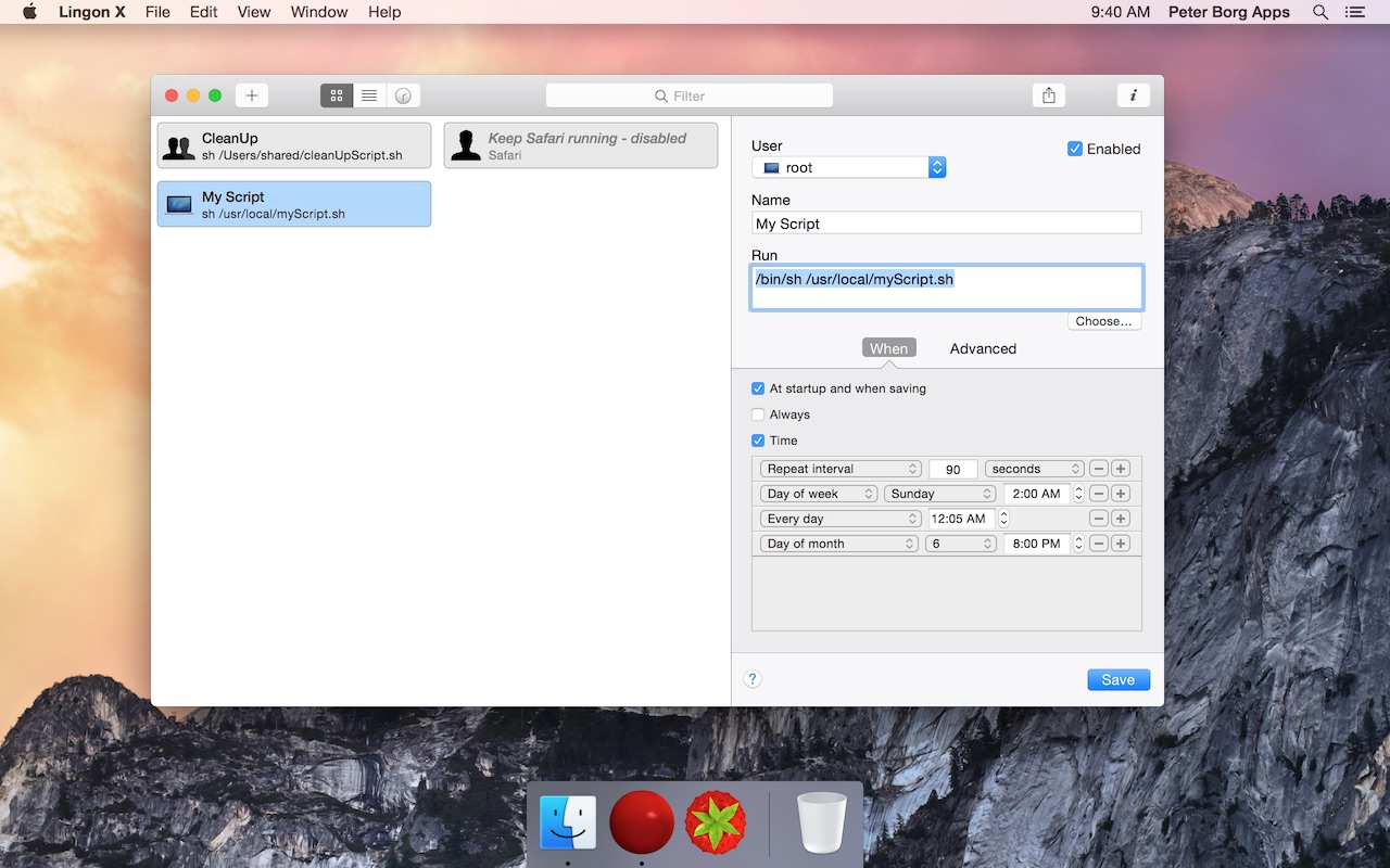 Lingon lets you run things automatically by modifying configuration files for the system function called “launchd”. This means that you can also edit or remove jobs created by other apps. And the system handles running the jobs in the background so you don’t need to have Lingon open after you have saved your job.