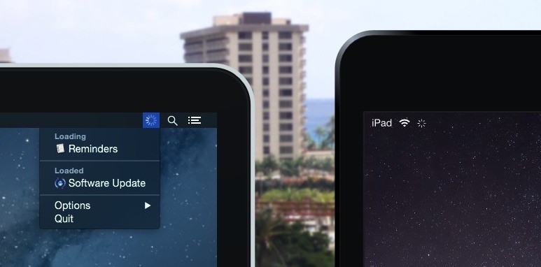 “がステータスバーに表示されますが、Mike McFaddenさんが開発した「Loding」はこのロードインジケーターをMacのメニューバーにも表示してくれるアプリです。