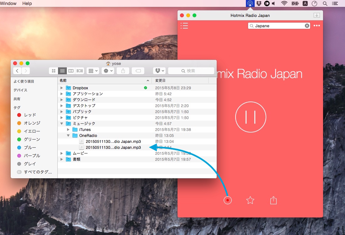 OneRadioはメニュバーに常駐またはシングルウィンドウに切り替えて使用することが出来、録音機能も兼ね備えています(デフォルトでは”~/Music/OneRadio”に保存されます)。現在7日間使用できるベータ版がダウンロード可能なので興味のある方は関連リンクからどうぞ。