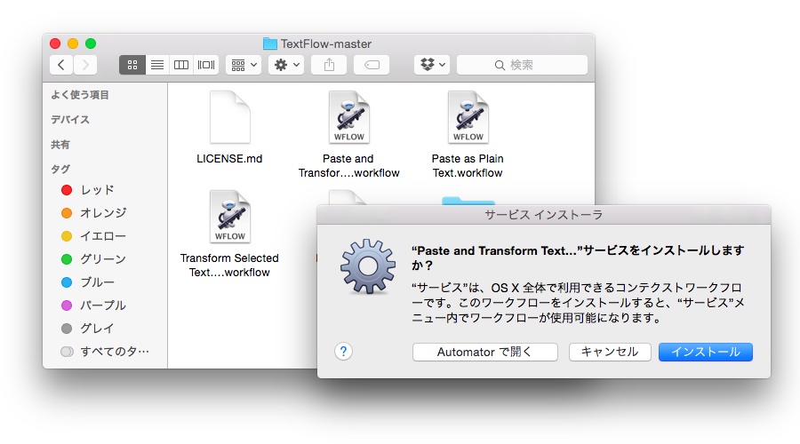使い方はTextFlowをGitHubからダウンロードして、中にある3つのWorkflowファイル