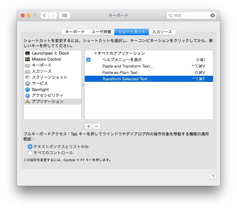 必要ならシステム環境設定.appから[キーボード] > [ショートカット] > [アプリケーション]を選択し新しくショートカットキーを追加。