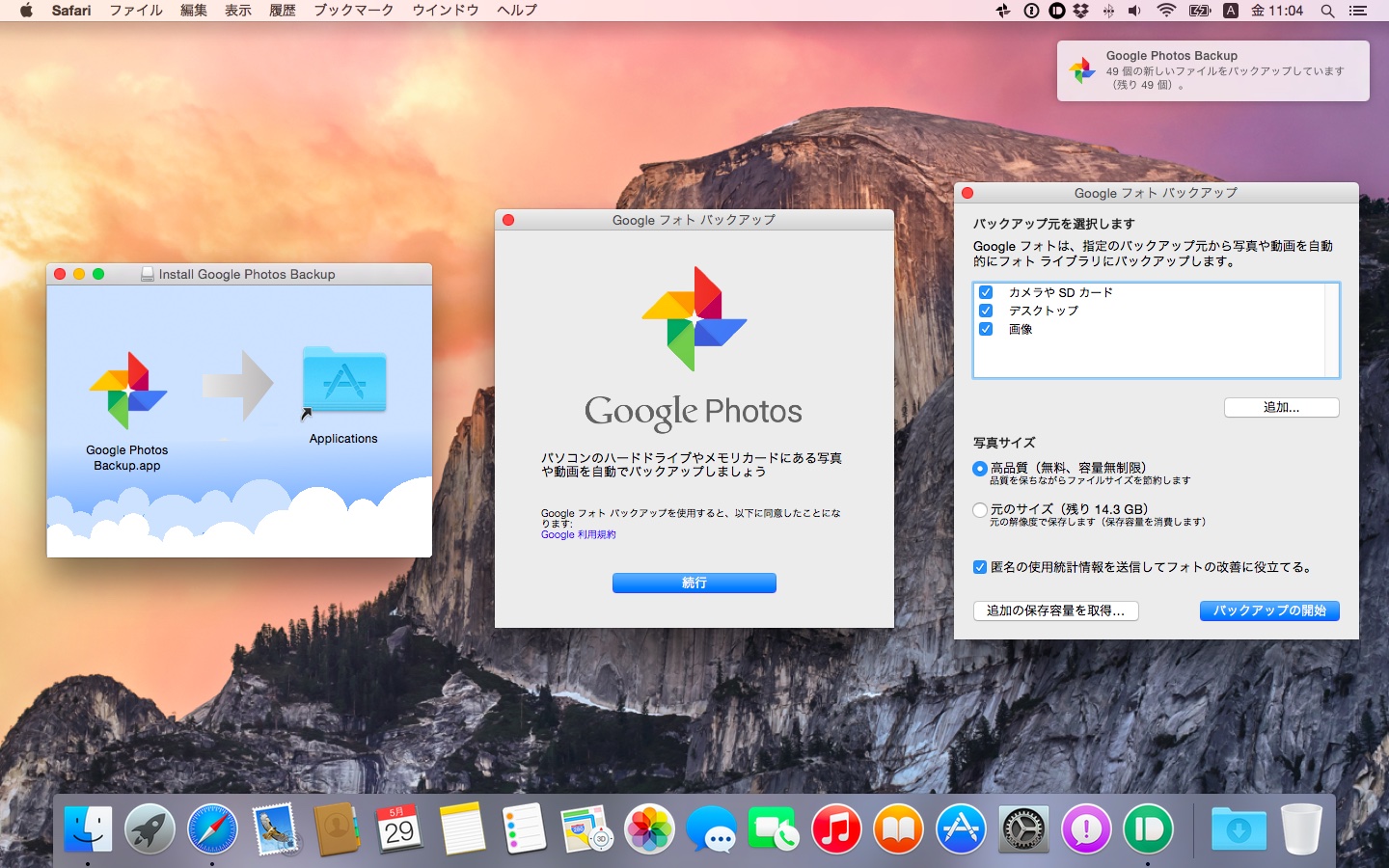 Google Photosは既にサービスを開始しており”photos.google.com“からアクセス可能でMac/iOS用アプリも配布されています。Mac用アプリ「Google Photos Backup.app」は接続されたカメラやSDカードから写真をGoogle Photosにバックアップする機能があり、