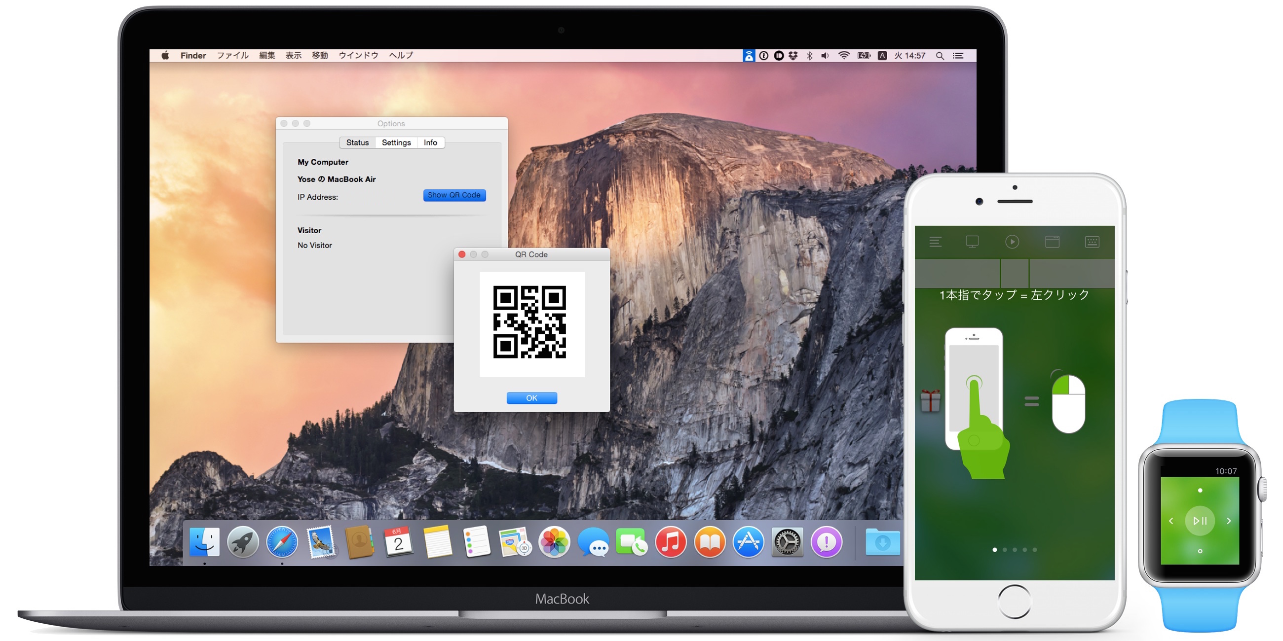 Remote Mouseは同一Wi-Fi内にあるiOSデバイスやAndroid, Windows Phoneなどのモバイル端末をMac, Windowsのマウスやキーボードとして使用できるアプリです。