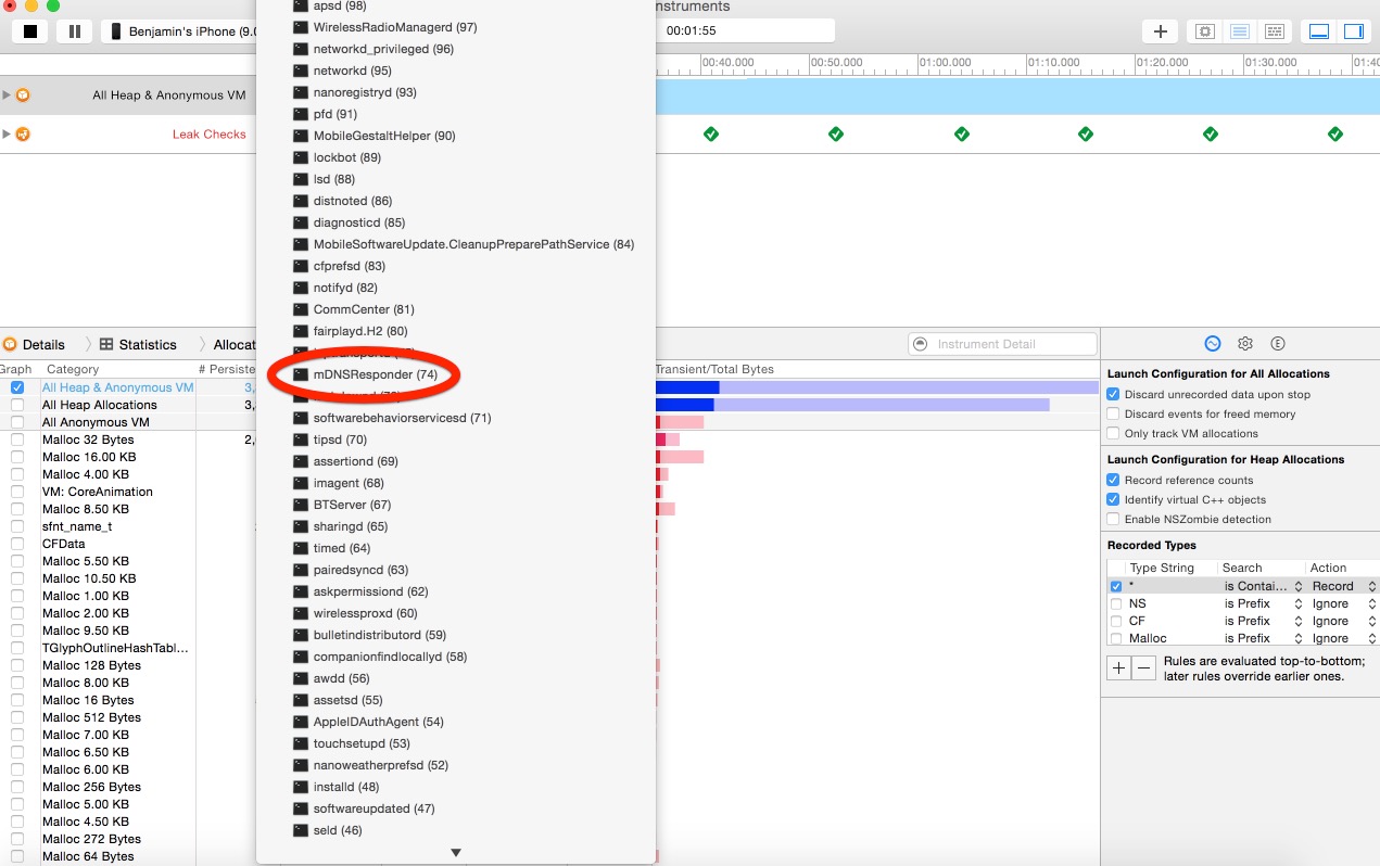 Using Xcode’s Instruments developer tools for iOS and Activity Monitor on the Mac, we can confirm that Apple has also dropped discoveryd on iOS 9 and OS X 10.11 El Capitan.