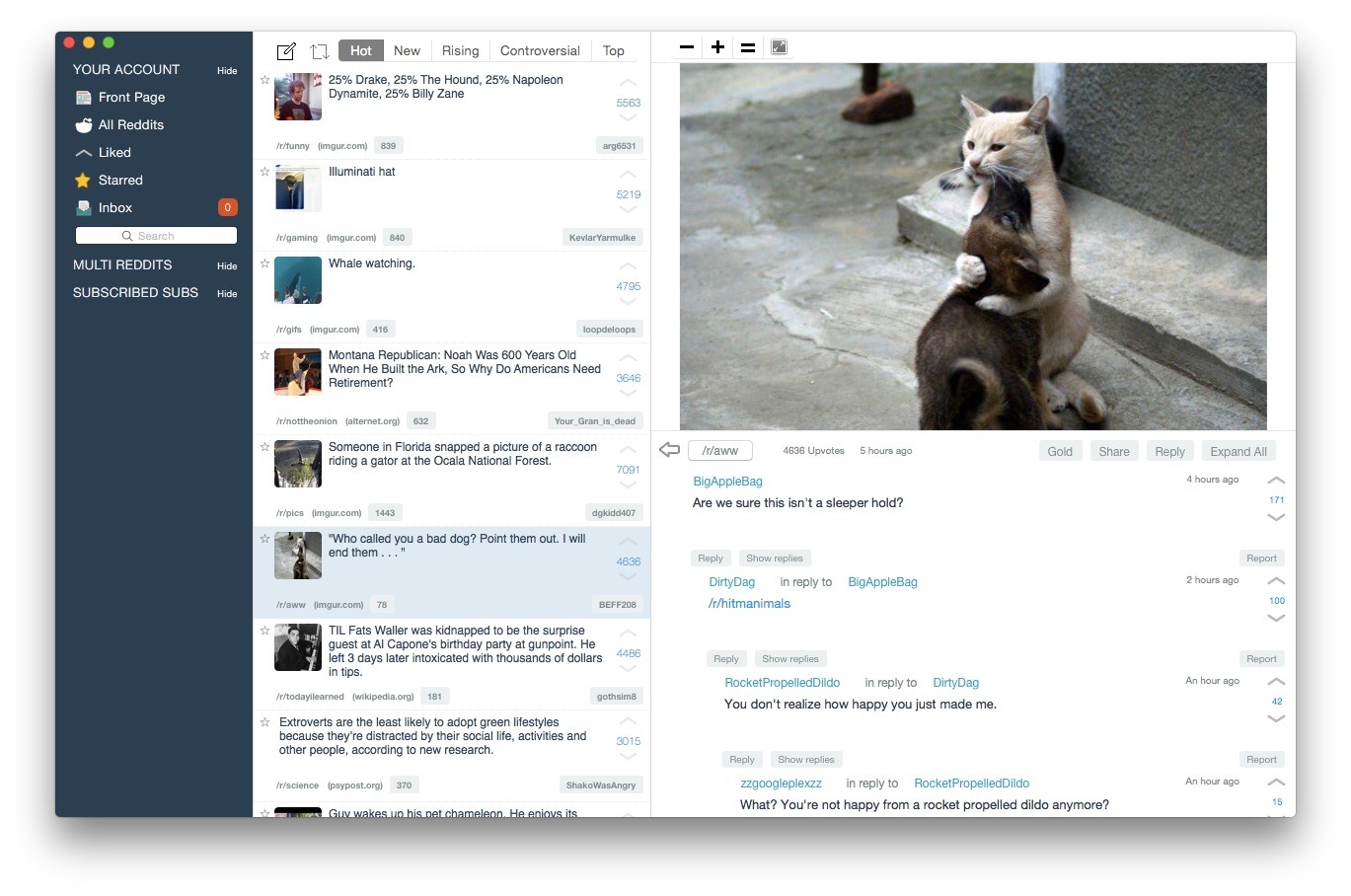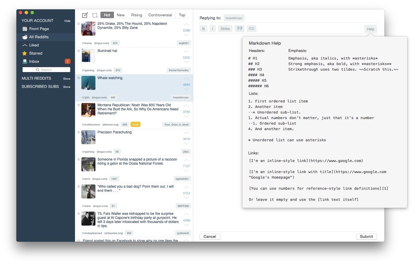 最近は多くの日本ユーザー向けSubRedditが作成されているようですが、BleamはSubRedditの管理、Reddit Gold、Imgurアルバム、Reddit検索、コメント書き込み時のMarkdown記法など様々な機能を備えています。
