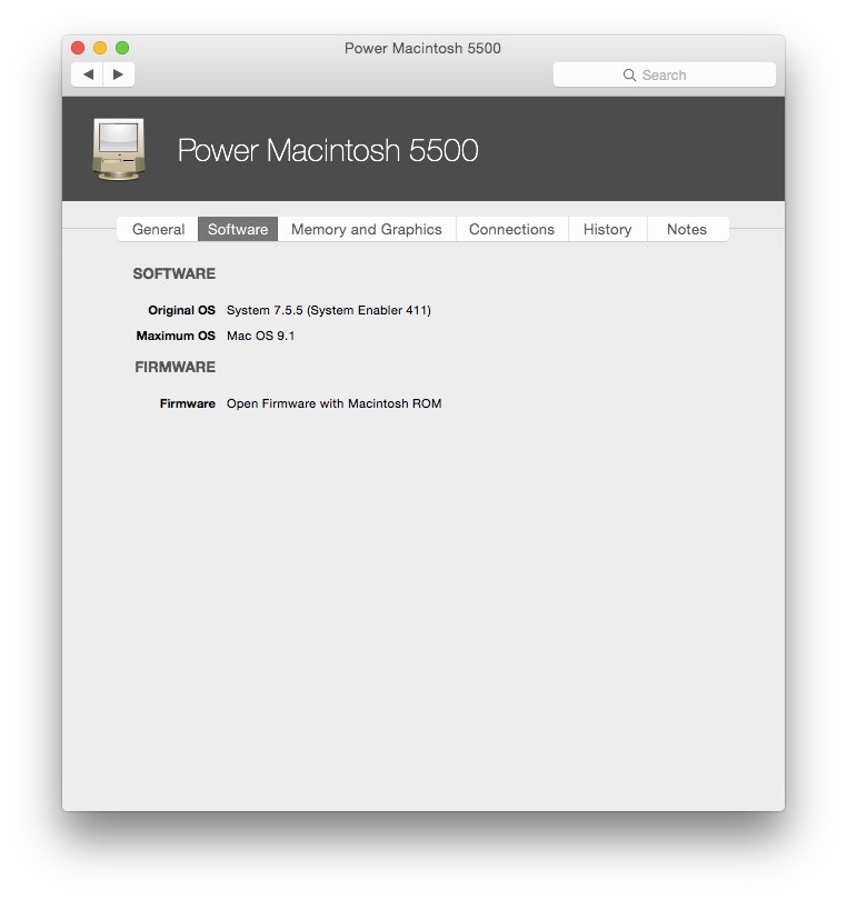 ちなみに1996年の7月に発表されたSystem 7.5.5はCPUにPowerPC 603e 225~275 MHz, 128MB Memory, 2GB StorageのPower Macintosh 5500に搭載され、当時の価格は1,999ドルでした。