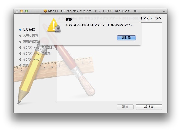 このアップデートは脆弱性のあるEFIディストリビューションを判断し配布されているため脆弱性の無いMacでは表示されませんが、”Dark Jedi attack”脆弱性を発見したセキュリティ研究者のPedro Vilacaさんによると、この脆弱性があった24のEFIファームウェアに対しこのアップデートが適用されるそうです。