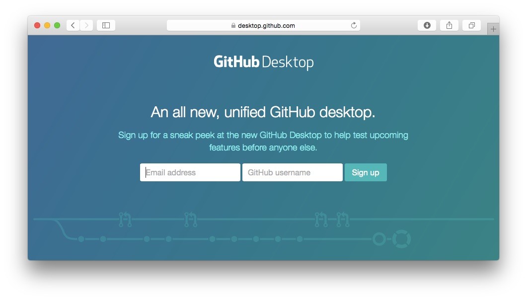 Sign up for a first look at GitHub Desktop–a new, native way to use GitHub for both Mac and Windows: http://t.co/Wh0kWU0Mwm